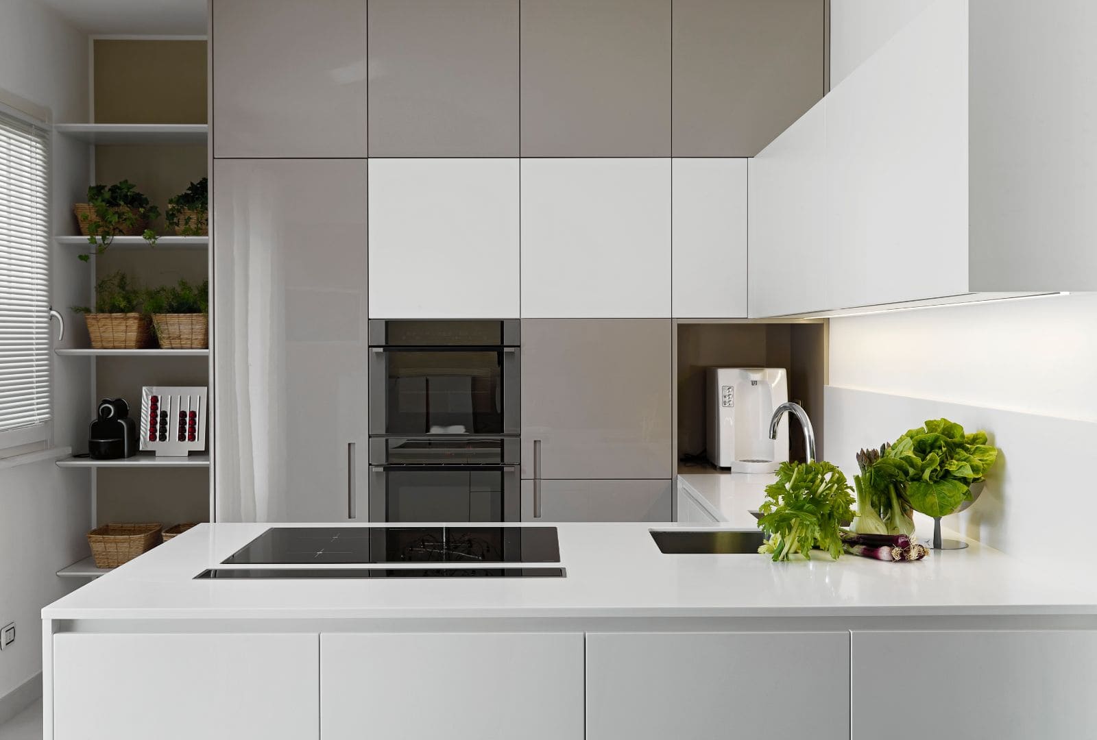 Estos son algunos de los ambientes creados con nuestro modelo de puertas con uñero para cocina, baño o armario. Una puerta con uñero incorporado que ocupa todo el ancho de la misma y con la que creamos espacios de líneas muy rectas y minimalistas. Disponible en múltiples colores.